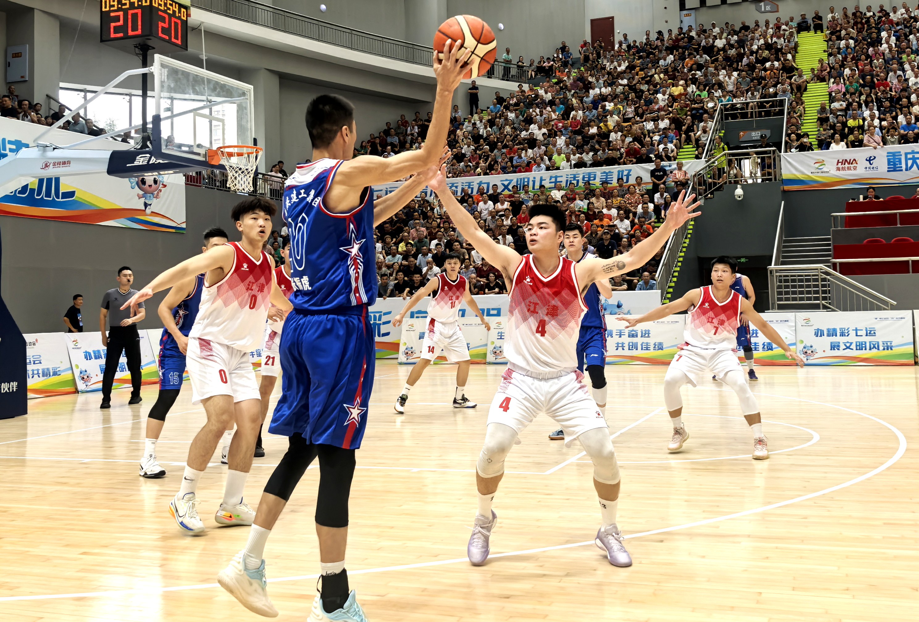 9月29日,值祖国75周年华诞来临之际,从重庆市第七届运动会比赛现场传来喜讯,重庆建工集团职工篮球队在篮球赛成年男子组决赛中,以106比88战胜江津区,继市六运会夺冠后再次以全胜战绩成功卫冕!集团党委副书记、工会主席鲁学佳代表集团党委看望慰问集团篮球队全体成员,为集团篮球队打气鼓劲助威,并全程观看比赛。