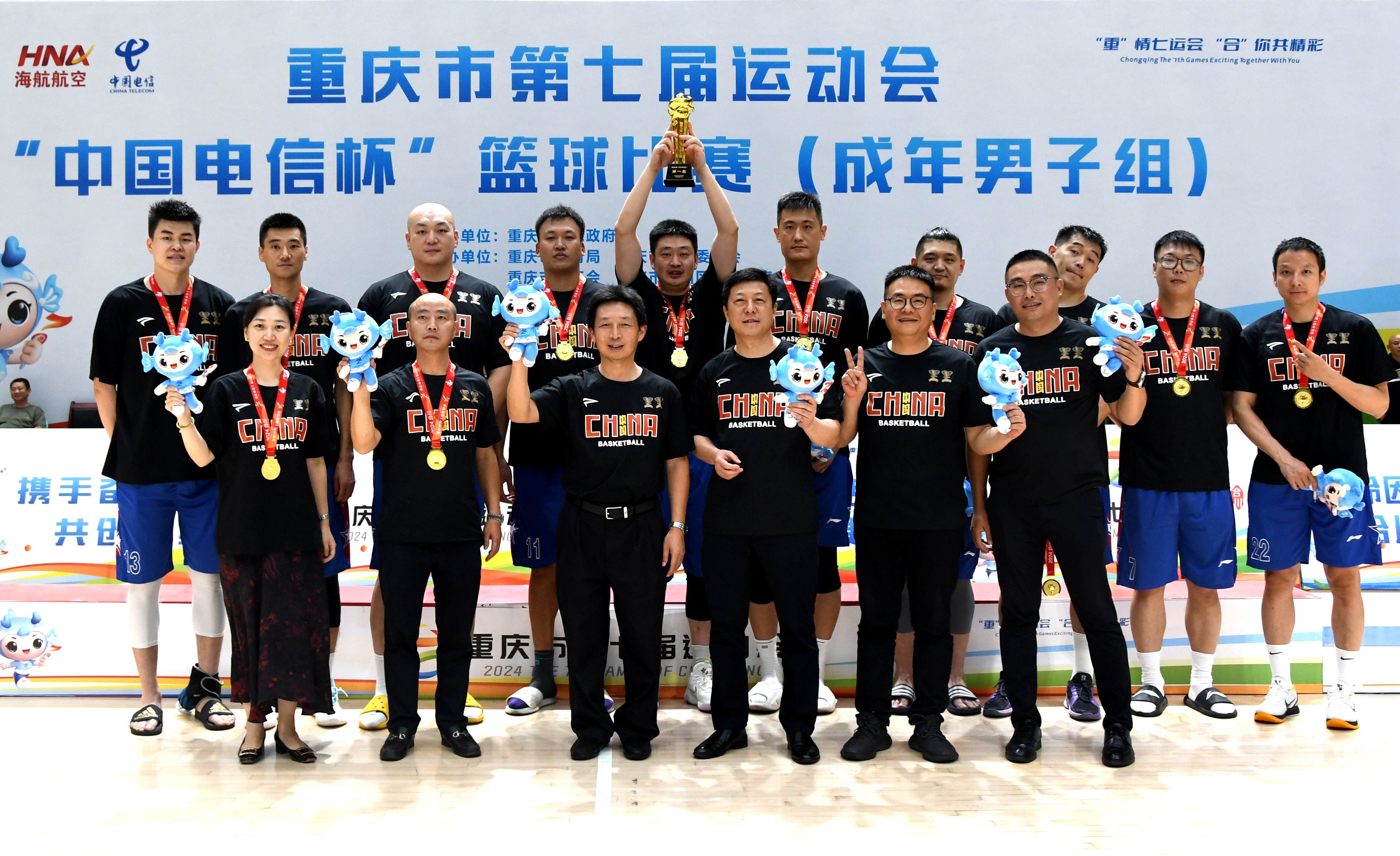 据悉,重庆市运动会是全市规格最高、规模最大、影响最广的综合性体育赛事,每4年举办一次。作为市七运会唯一一支市属国企代表队,重庆建工集团职工篮球队在5场比赛中,团结一心、顽强拼搏,凭借着严谨的防守、流畅的进攻、默契的配合,场均净胜对手21.2分,最终以压倒性优势勇夺桂冠,再次展现了“建工铁军”的风采。