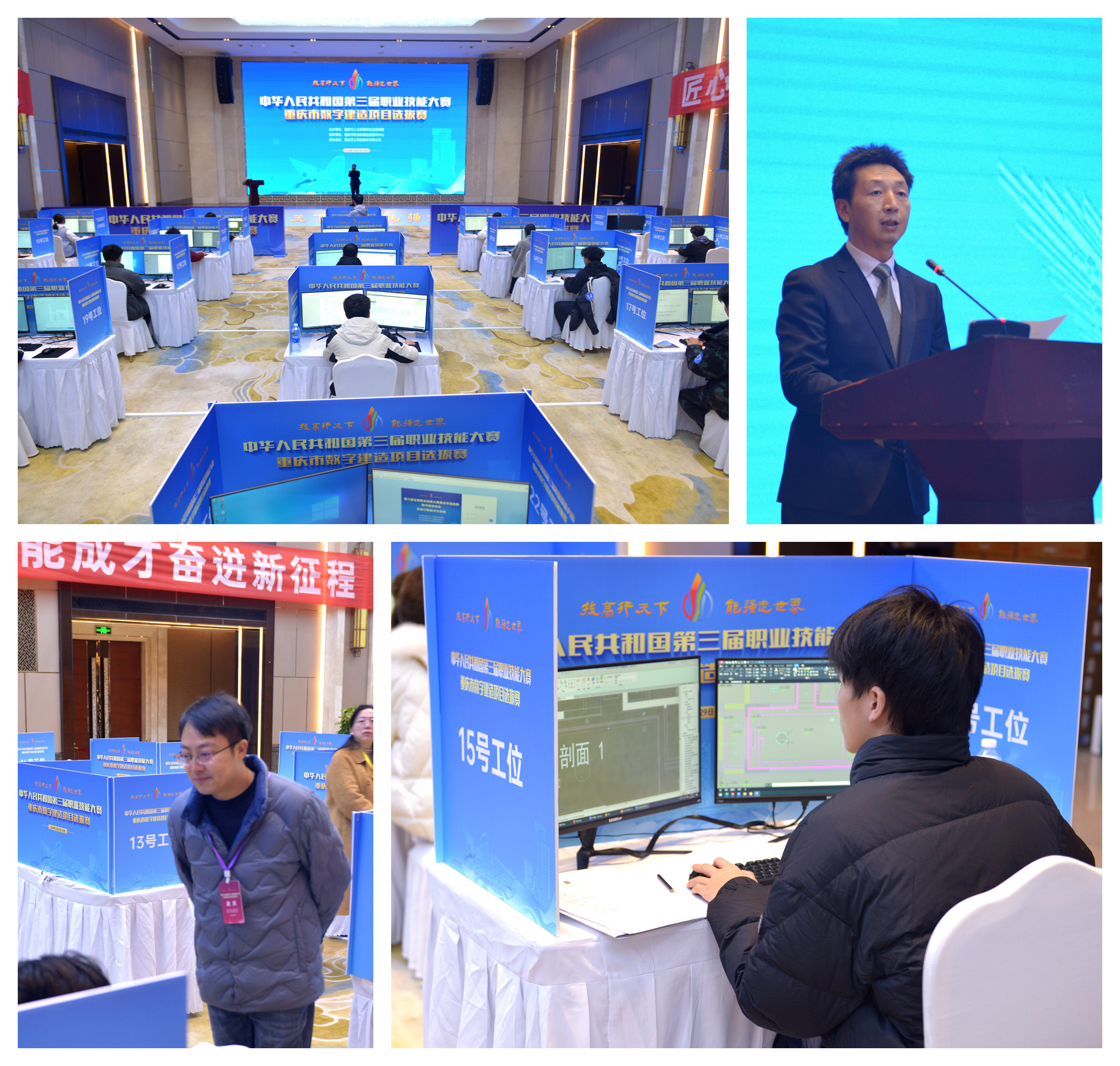 12月29日至30日,中华人民共和国第三届职业技能大赛重庆市数字建造项目选拔赛在重庆建工集团举行,来自全市11所高校、职业院校的20名选手齐聚一堂、同台竞技。市人力社保局、市国资委、两江新区人力社保局有关负责人现场巡考,集团党委副书记、工会主席鲁学佳出席启动仪式并致辞。